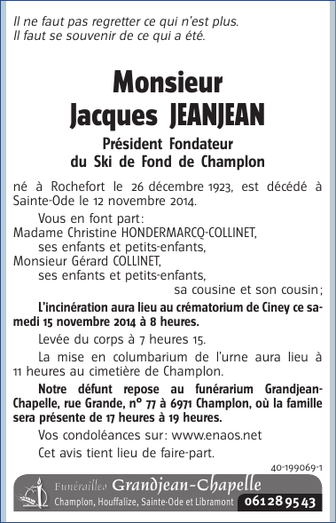 Décédé à Sainte-Ode (6680) le mercredi 12 novembre 2014 à l'âge de 90 ans
