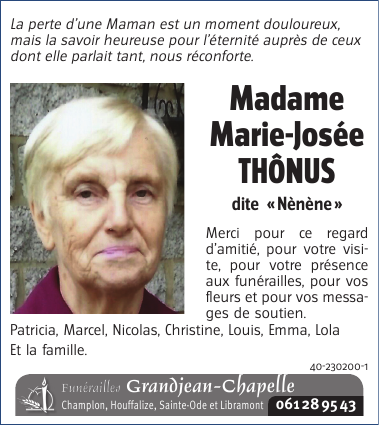 Née à Longvilly (6600) le jeudi 21 août 1941