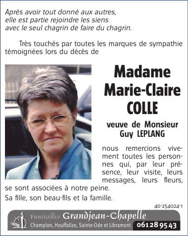 Décédée à Libramont (6800) le vendredi 21 octobre 2016 à l'âge de 66 ans