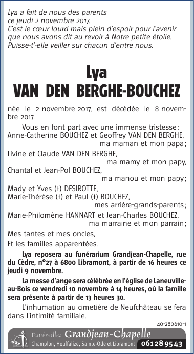 Née à Mouscron (7700) le jeudi 2 novembre 2017