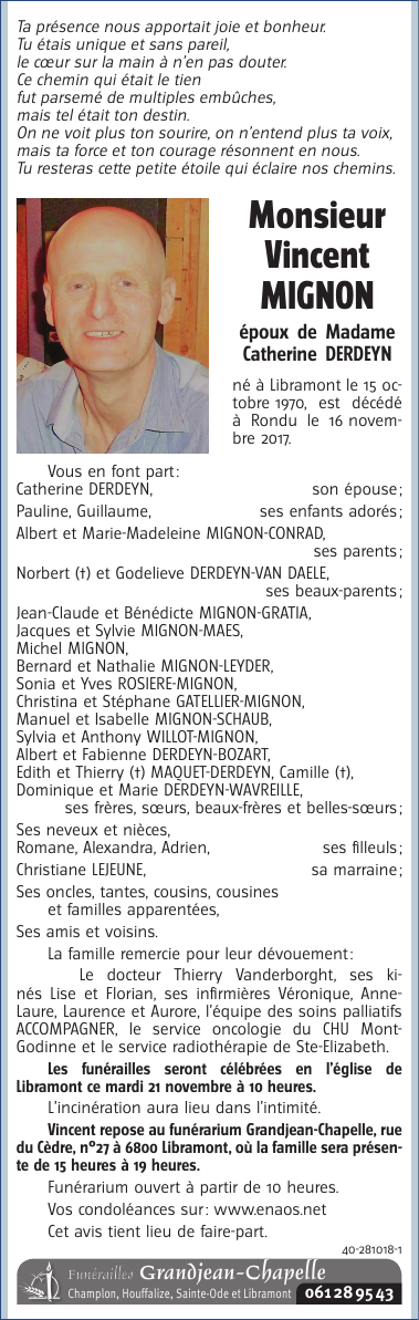 Né à Libramont (6800) le jeudi 15 octobre 1970