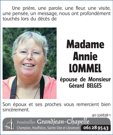 Née à Bouillon (6830) le dimanche 11 mai 1958