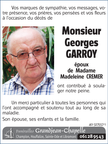 Décédé à Boeur (6662) le dimanche 3 novembre 2019 à l'âge de 84 ans