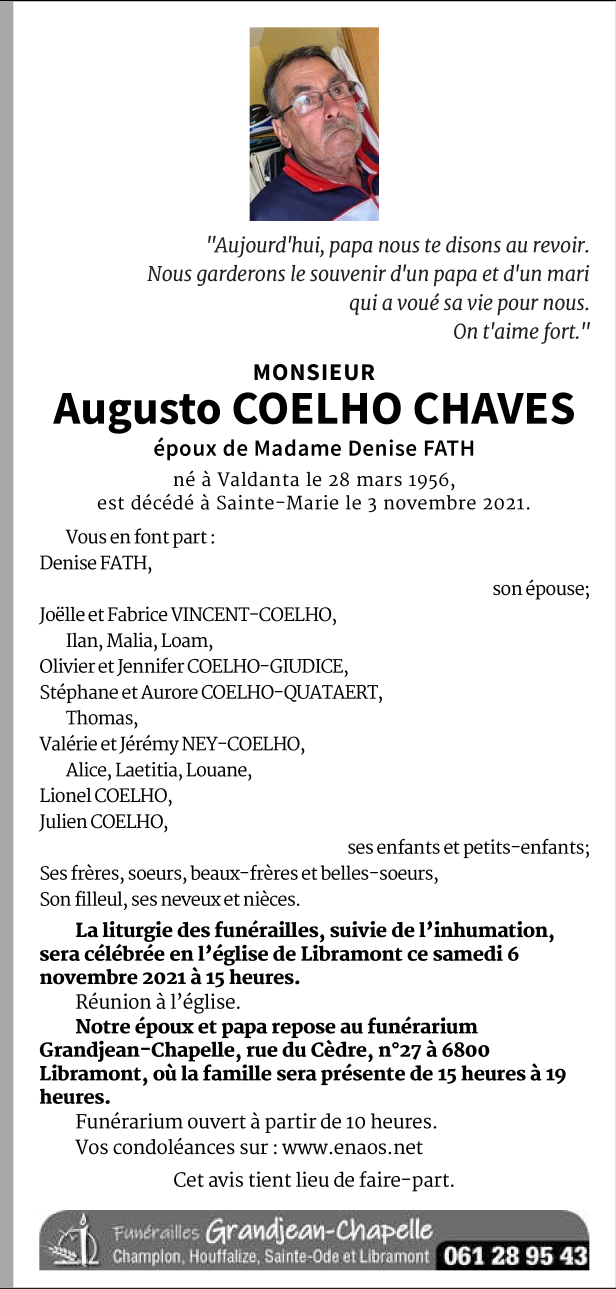Décédé à Bernimont (6800) le mercredi 3 novembre 2021 à l'âge de 65 ans
