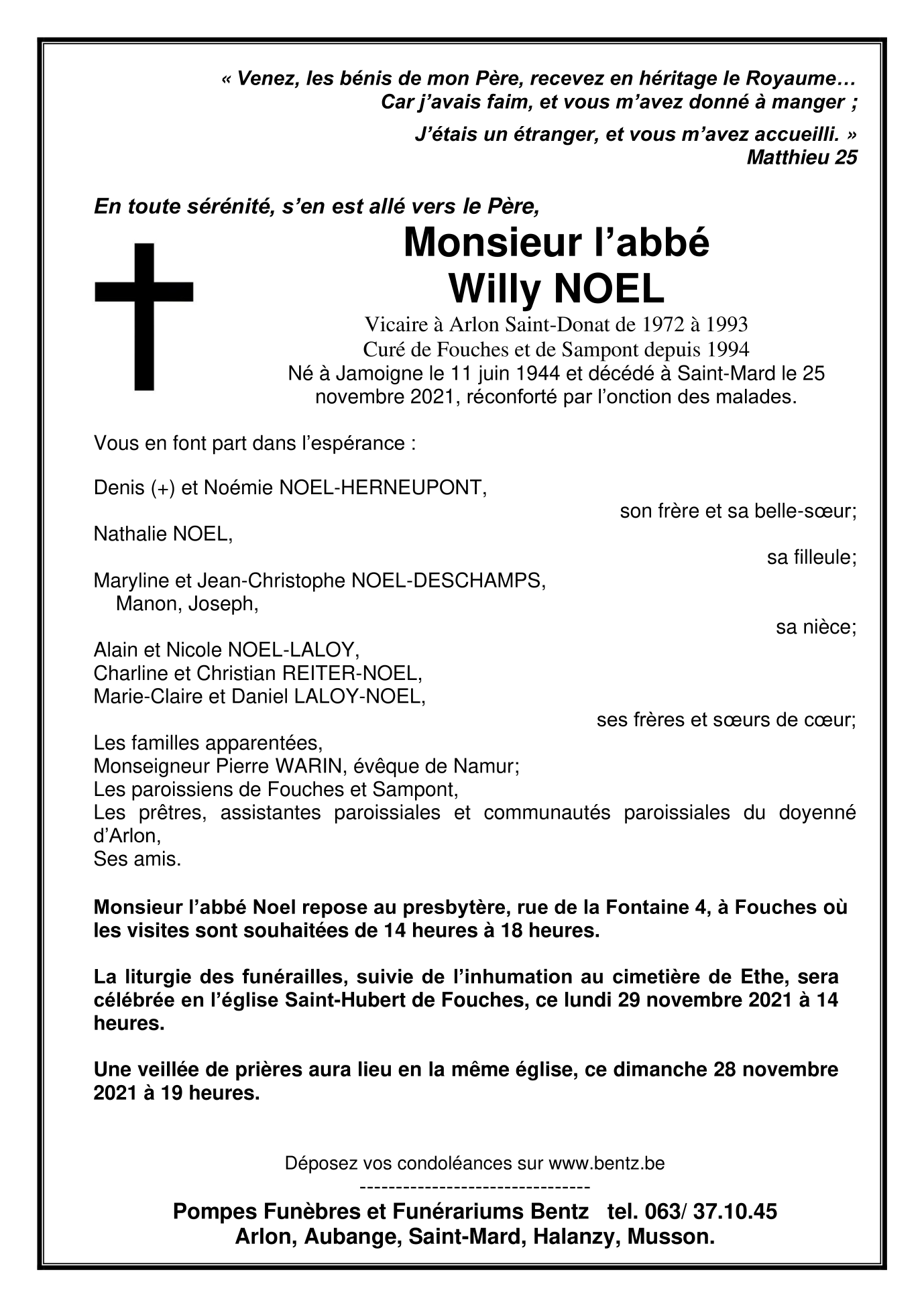 Décédé à Saint-Mard (6762) le jeudi 25 novembre 2021 à l'âge de 77 ans