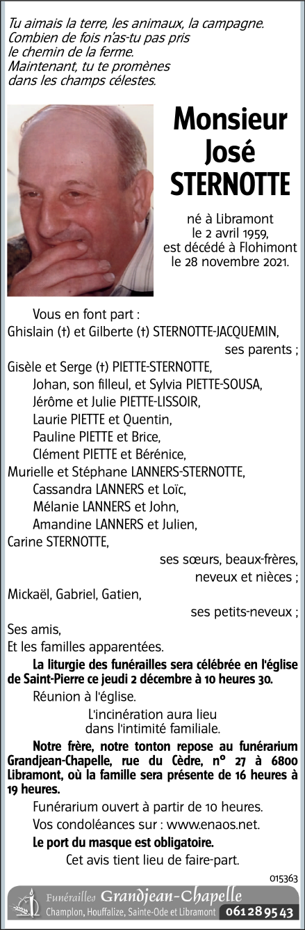 Décédé à Flohimont (6800) le dimanche 28 novembre 2021 à l'âge de 62 ans