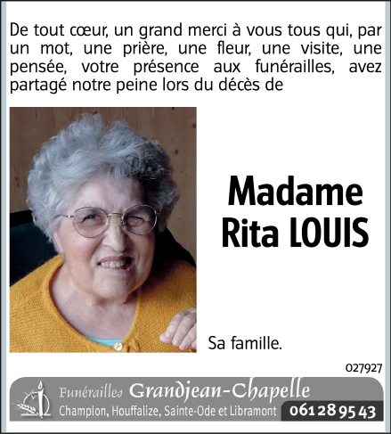 Décédée à Libramont (6800) le mercredi 11 mai 2022 à l'âge de 73 ans