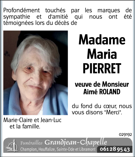 Décédée à Bertrix (6880) le mercredi 8 juin 2022 à l'âge de 89 ans