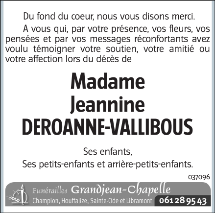 Décédée à Marche-en-Famenne (6900) le jeudi 27 octobre 2022 à l'âge de 96 ans