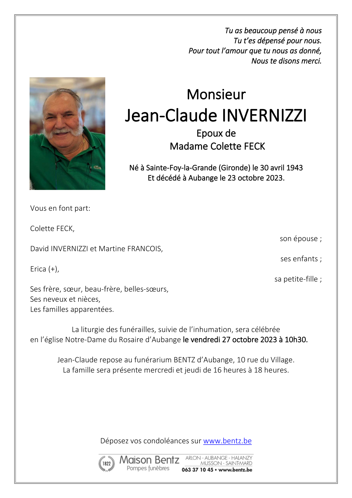 Décédé à Aubange (6790) le lundi 23 octobre 2023 à l'âge de 80 ans