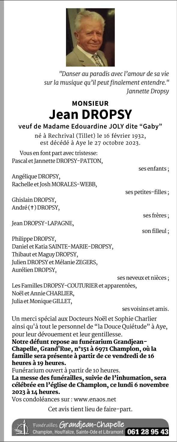 Décédé à Aye (6900) le mercredi 1 novembre 2023 à l'âge de 91 ans