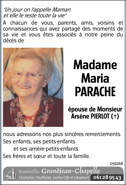Veuve de Monsieur Arsène PIERLOT