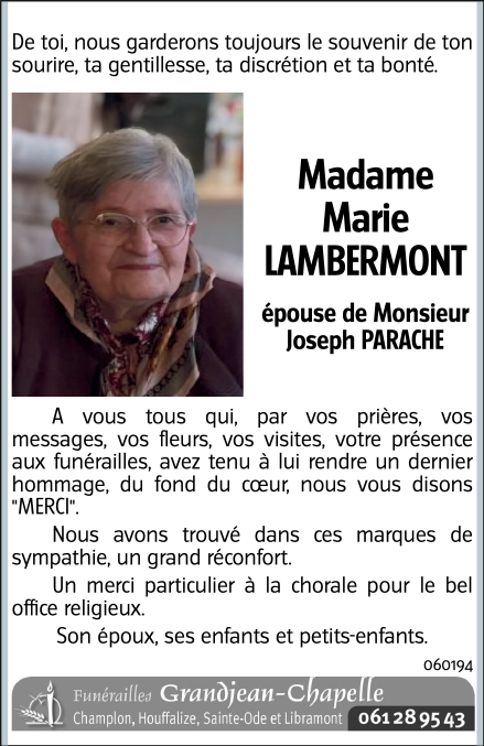 Madame Marie LAMBERMONT