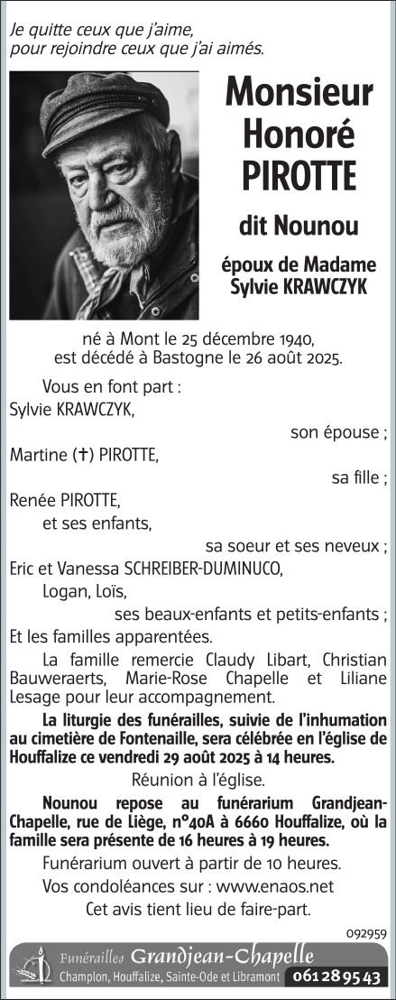Décédé à Bastogne (6600) le mardi 26 août 2025 à l'âge de 84 ans