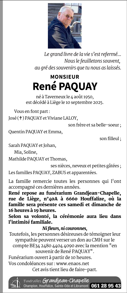 Né à Taverneux (6661) le vendredi 4 août 1950