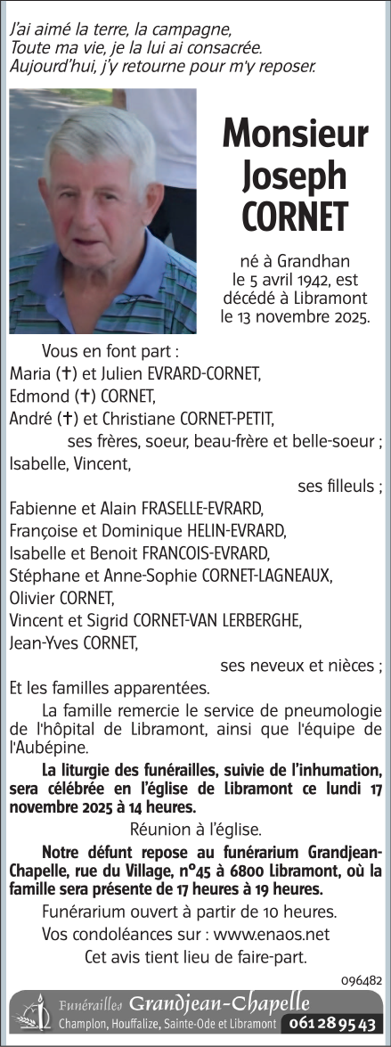 Décédé à Libramont (6800) le jeudi 13 novembre 2025 à l'âge de 83 ans