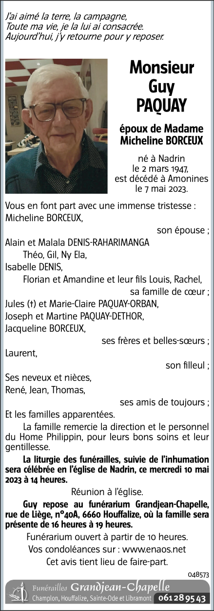 Né à Nadrin (6660) le dimanche 2 mars 1947