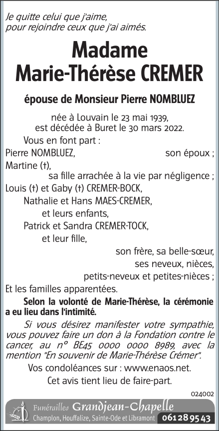 Madame Marie-Thérèse CREMER