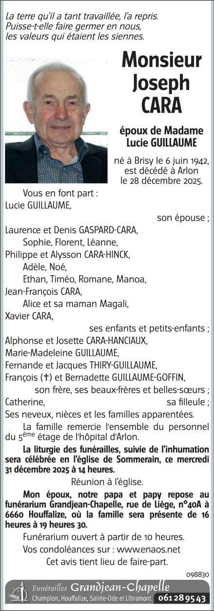 Décédé à Arlon (6700) le dimanche 28 décembre 2025 à l'âge de 83 ans
