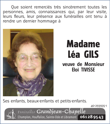 Née à Nimbermont (6800) le samedi 6 août 1932