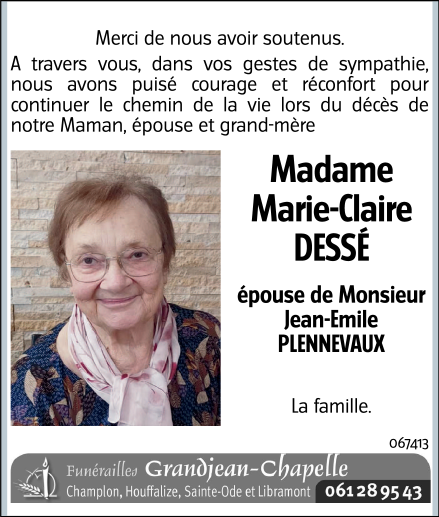 Décédée à Libramont (6800) le lundi 25 mars 2024 à l'âge de 77 ans