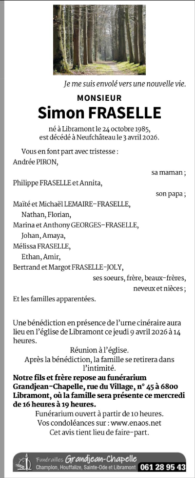Décédé à Neufchâteau (6840) le vendredi 3 avril 2026 à l'âge de 40 ans