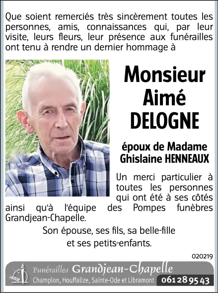 Décédé à Arlon (6700) le lundi 13 décembre 2021 à l'âge de 86 ans