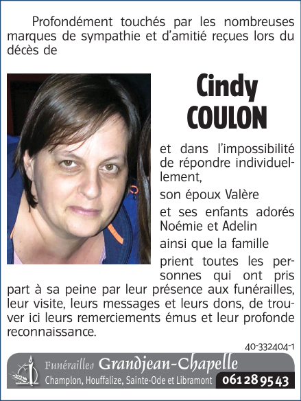 Décédée à Libramont (6800) le vendredi 24 janvier 2020 à l'âge de 43 ans