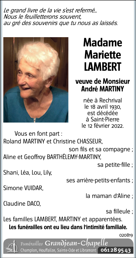 Veuve de Monsieur André MARTINY