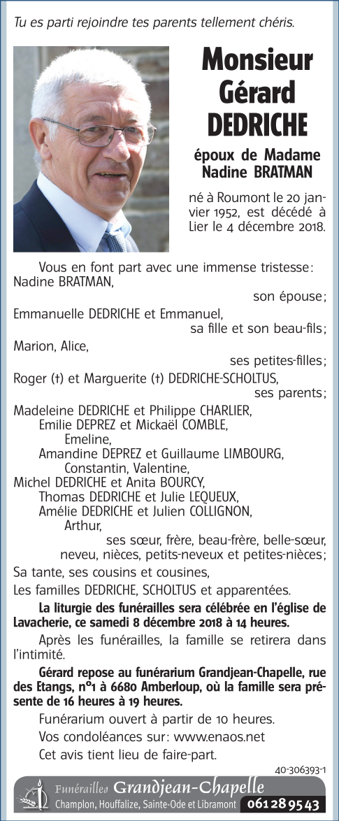 Décédé à Lier (2500) le mardi 4 décembre 2018 à l'âge de 66 ans