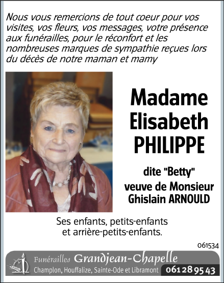 Décédée à Libramont (6800) le mercredi 20 décembre 2023 à l'âge de 87 ans