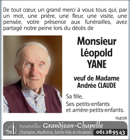 Décédé à Renaumont (6800) le jeudi 12 mars 2026 à l'âge de 92 ans