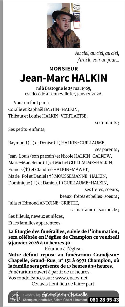 Décédé à Tenneville (6970) le lundi 5 janvier 2026 à l'âge de 60 ans