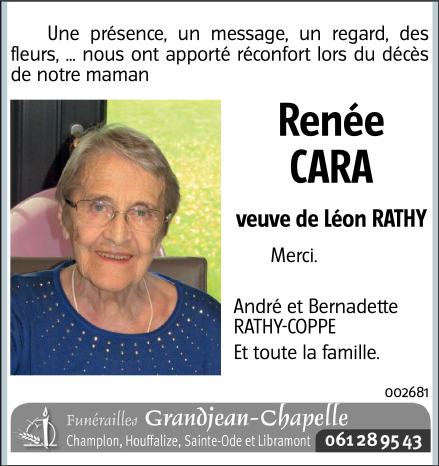Décédée à Libramont (6800) le lundi 19 avril 2021 à l'âge de 88 ans