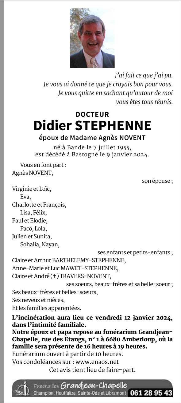 Décédé à Bastogne (6600) le mardi 9 janvier 2024 à l'âge de 68 ans