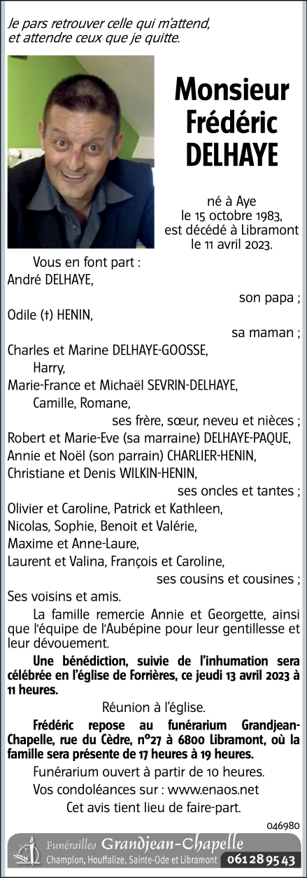 Décédé à Libramont (6800) le mardi 11 avril 2023 à l'âge de 39 ans