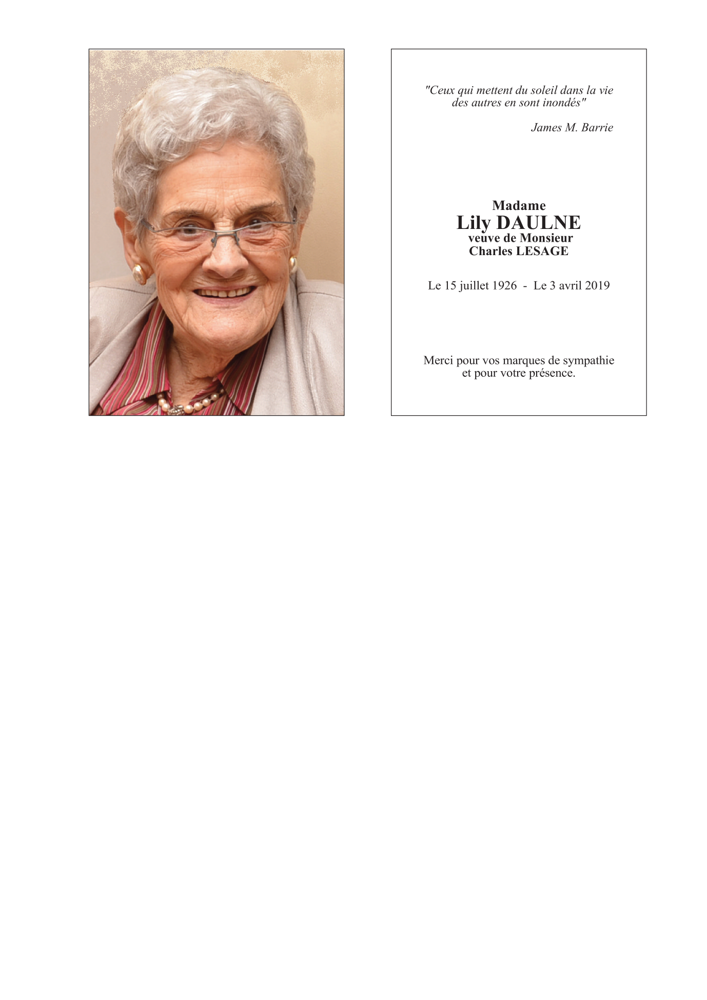 Décédée à Houffalize (6660) le mercredi 3 avril 2019 à l'âge de 92 ans