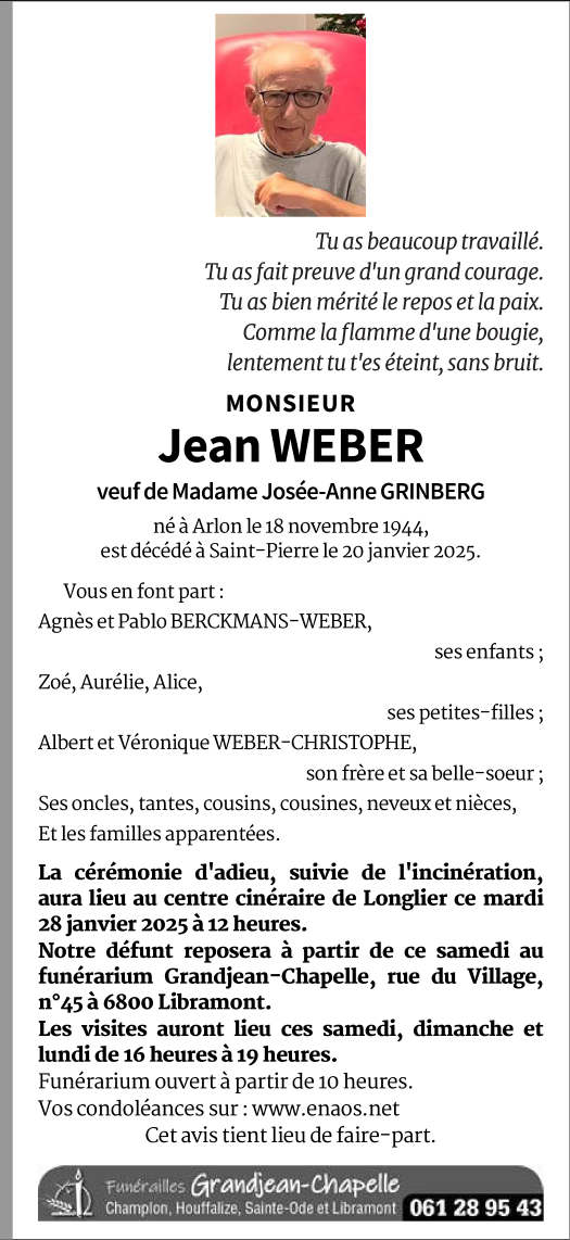Décédé à Saint-Pierre (6800) le lundi 20 janvier 2025 à l'âge de 80 ans