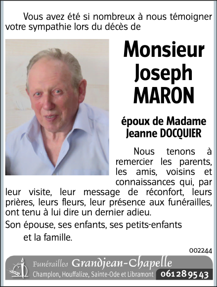 Décédé à Les Tailles (6661) le mardi 13 avril 2021 à l'âge de 81 ans