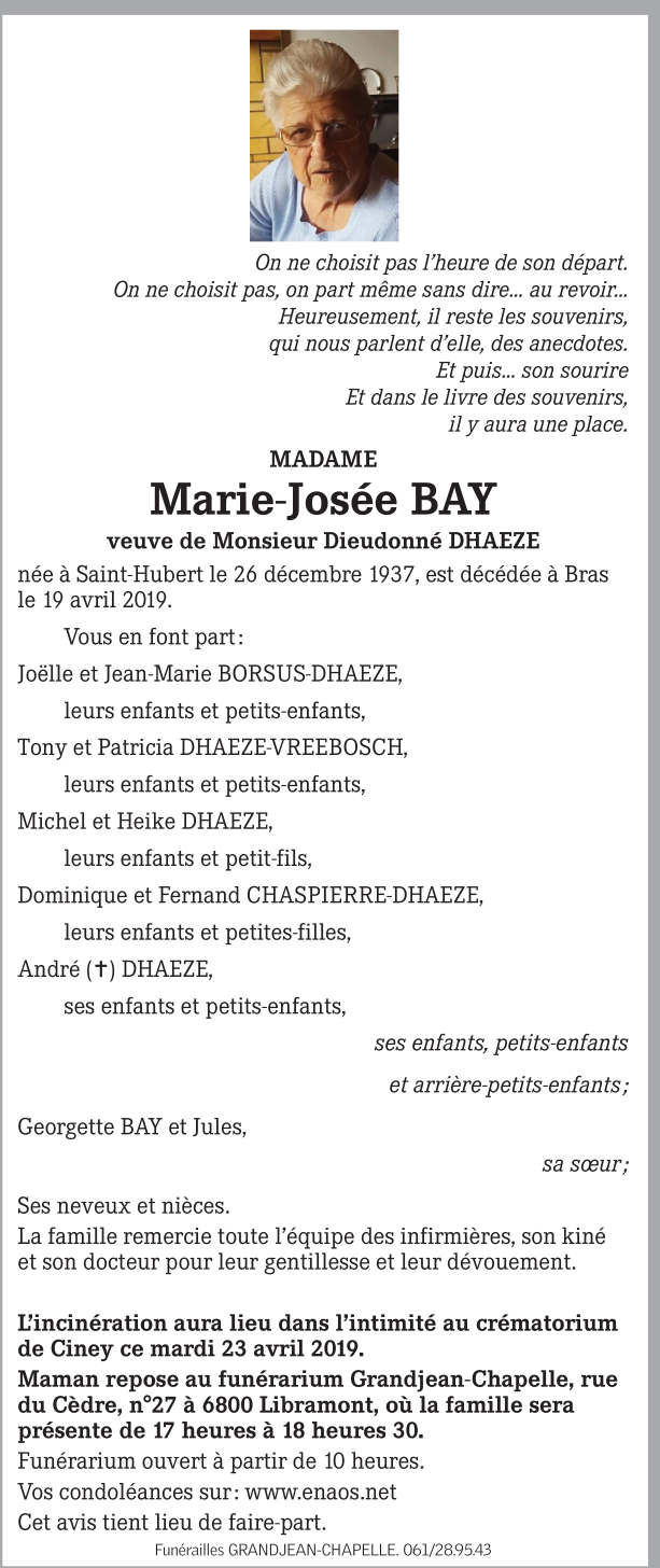 Décédée à Bras (6800) le vendredi 19 avril 2019 à l'âge de 81 ans