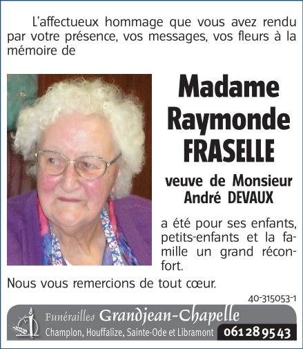 Décédée à Aye (6900) le mardi 19 mars 2019 à l'âge de 94 ans