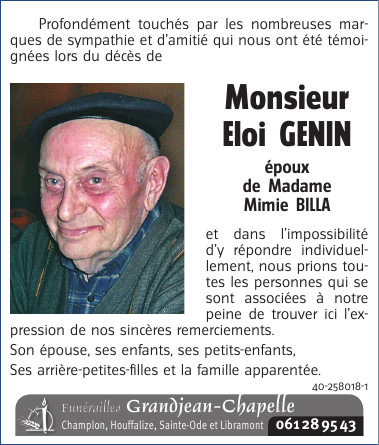 Né à Champlon (6971) le dimanche 10 mai 1925