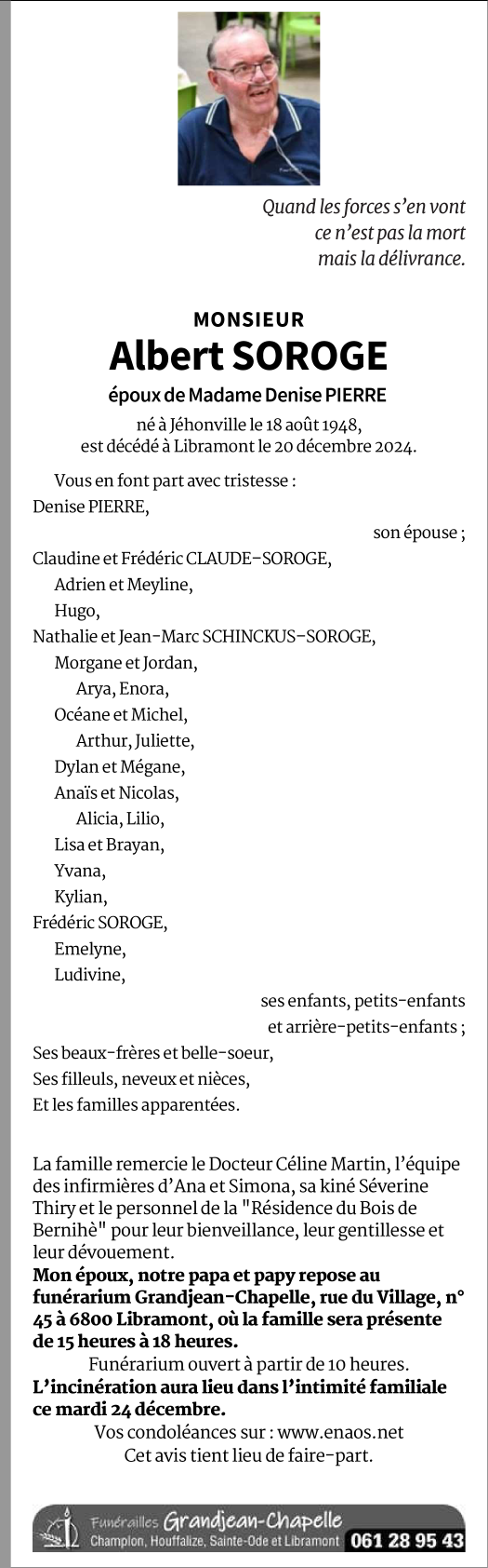 Décédé à Libramont (6800) le vendredi 20 décembre 2024 à l'âge de 76 ans
