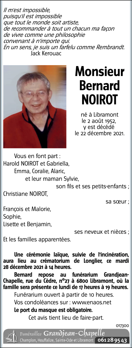 Décédé à Libramont (6800) le mercredi 22 décembre 2021 à l'âge de 69 ans