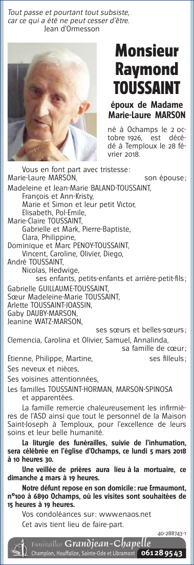 Monsieur Raymond TOUSSAINT