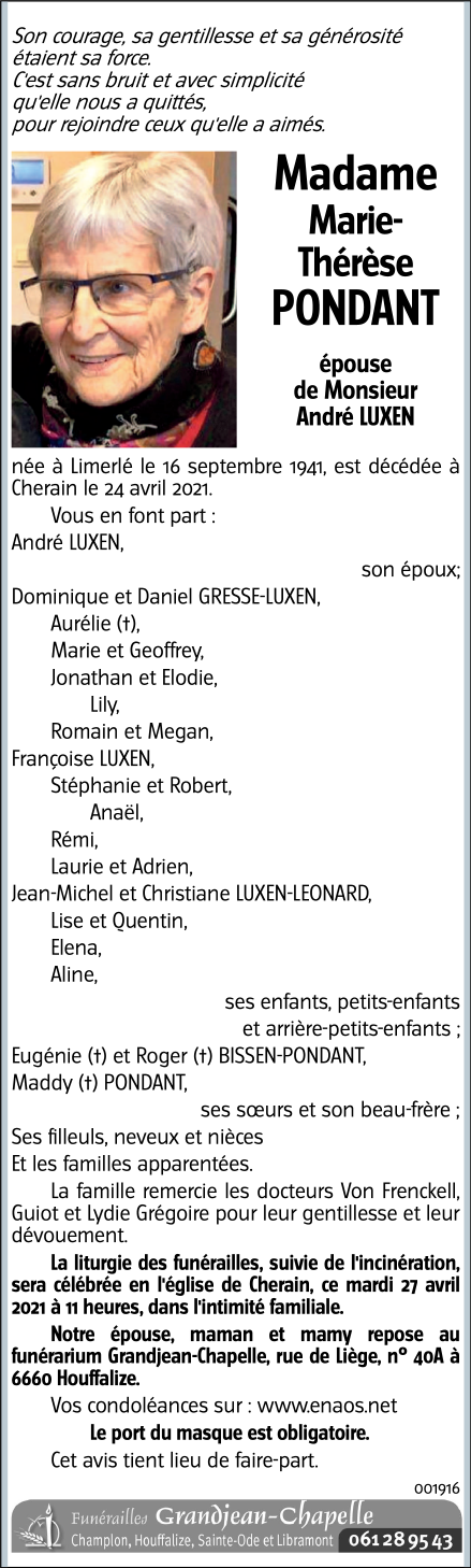 Epouse de Monsieur André LUXEN