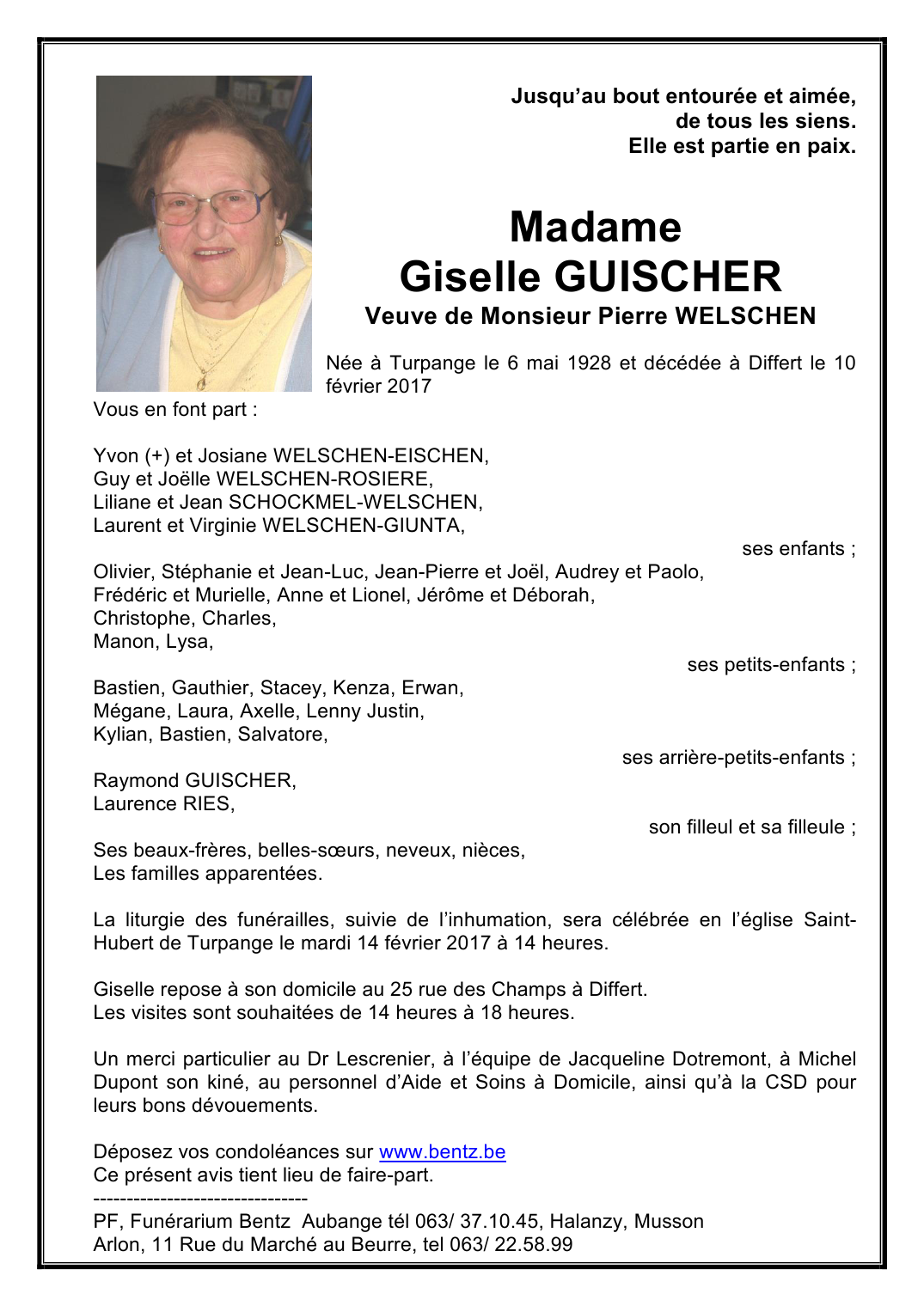 Veuve de Monsieur Pierre WELSCHEN
