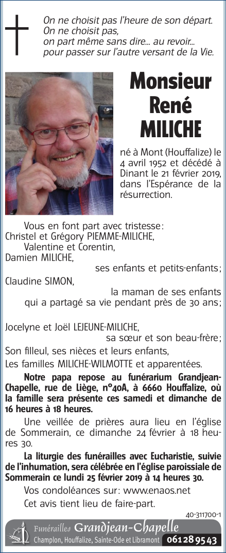 Décédé à Dinant (5500) le jeudi 21 février 2019 à l'âge de 66 ans