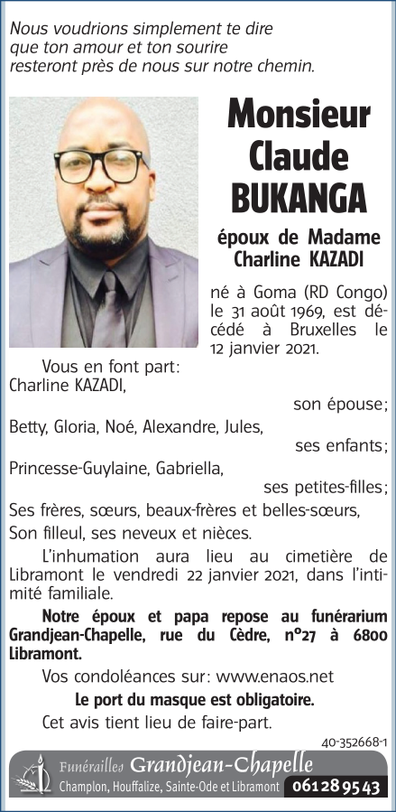 Décédé à Bruxelles (1000) le mardi 12 janvier 2021 à l'âge de 51 ans