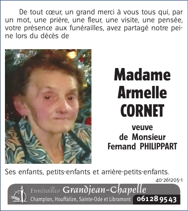 Veuve de Monsieur Fernand PHILIPPART